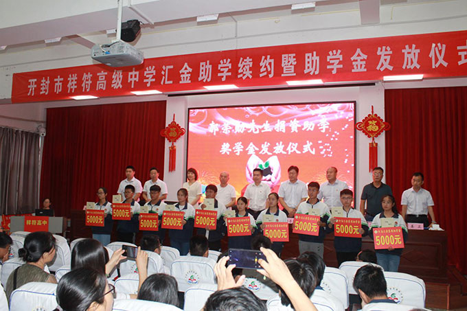會議開始前,當郭董、孔總裁等一行十余人步入報告廳時,全場響起了熱烈的掌聲。儀式上,祥符一中校長張衛林對郭董五年來對學校及貧困學子的無私捐助給予了高度贊賞。