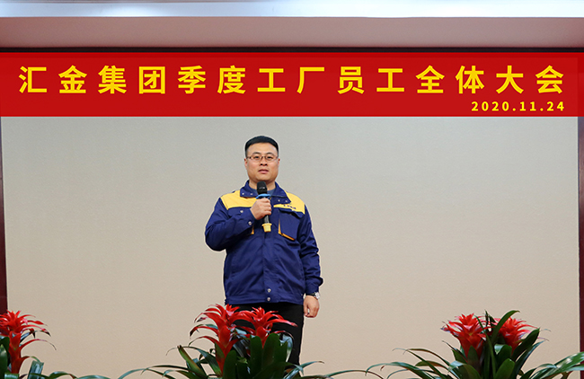 2020年11月24日,匯金集團(tuán)第四季度工廠員工大會(huì)在匯金生產(chǎn)中心三樓報(bào)告廳成功召開。匯金集團(tuán)董事長郭榮勛、CEO兼總裁孔攀紅、生產(chǎn)總監(jiān)鞏康如及工廠全體員工隆重出席此次會(huì)議。