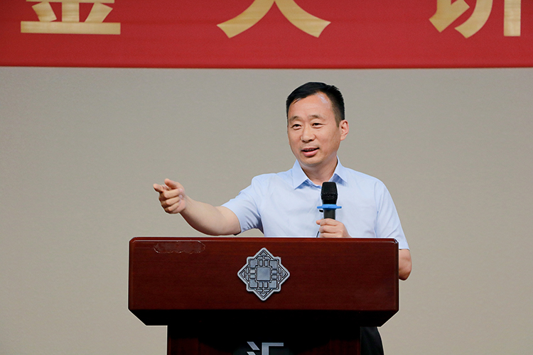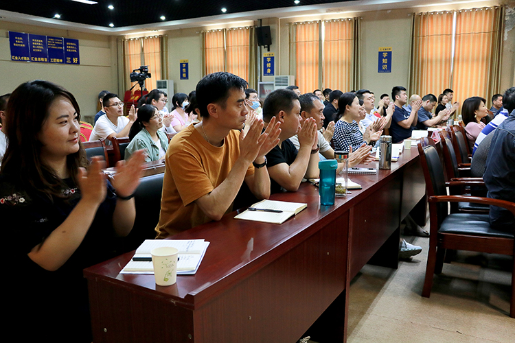 姜衛(wèi)總經(jīng)理通過回顧自己從上學(xué)、組建家庭到參加工作等不同階段的故事經(jīng)歷,講述了“讓家庭過上幸福美滿生活”的承擔(dān)感悟。同時列舉自己與郭榮勛董事長的點滴故事,以郭董做事“考慮別人”、“有標準”、“計劃性強”的三大優(yōu)點總結(jié),向我們展示出了郭董優(yōu)秀的承擔(dān)精神和高尚的人格魅力。隨后,姜總通過闡述自己和銷售人員良好處理銷售難題的正向案例和采購中遇到的“不承擔(dān)”反向案例,向大家解讀了關(guān)于承擔(dān)“說大家想聽、做大家所想”的分量以及“承擔(dān)是道”的意義。