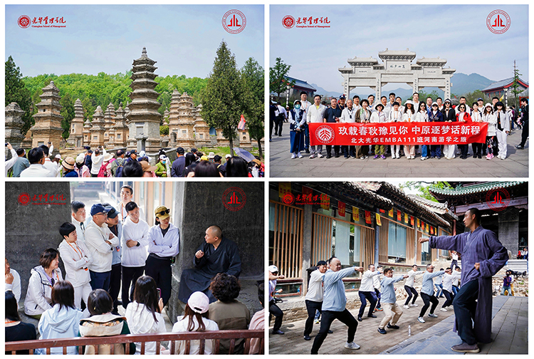 在洛陽白馬寺靜聽梵音、于龍門石窟對話盧舍那大佛、到國際牡丹園賞國色牡丹,并與EMBA109班同學一城同聚,品味洛陽水席宴;在登封少林觀賞功夫秀、與大師交流禪機、瞻仰塔林、在禪宗音樂大典感悟東方哲學智慧;游學最后一站抵達鄭州,同學們品茶論道,共敘九年同窗情誼。